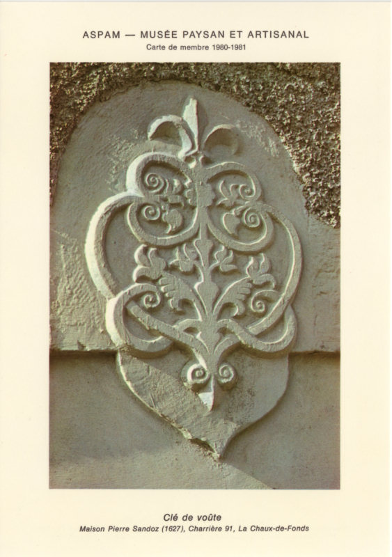 CLÉ DE VOÛTEMaison Pierre Sandoz (1627), Charrière 91, La Chaux-de-Fonds. |