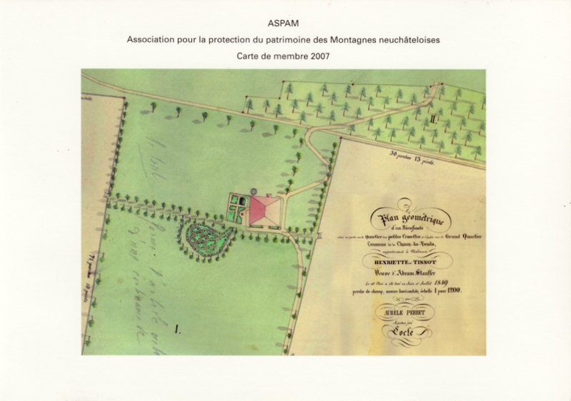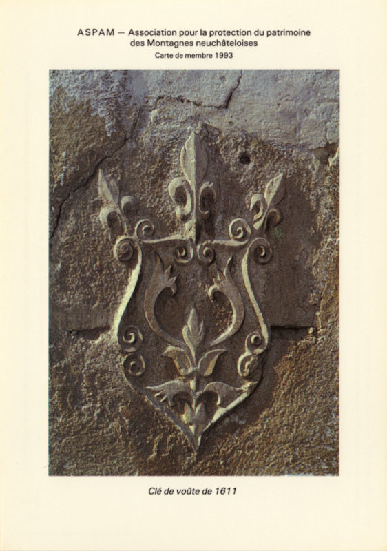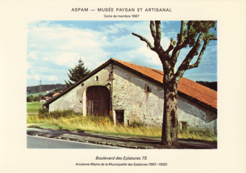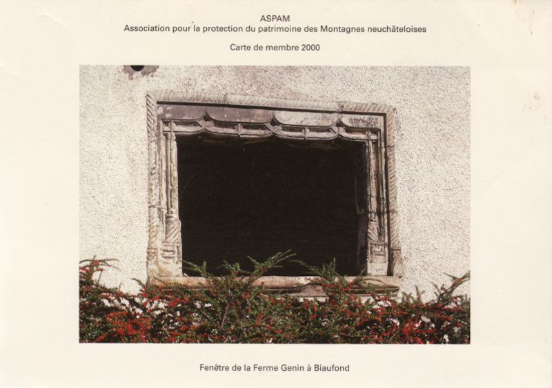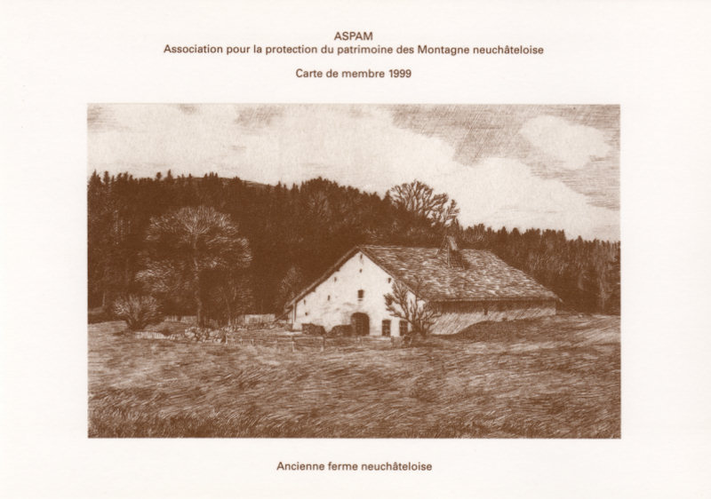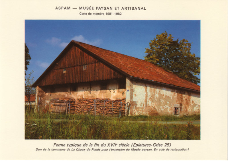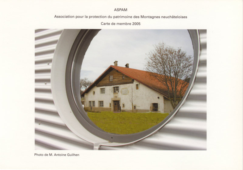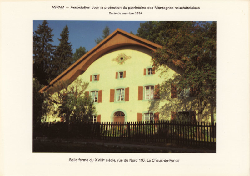 EPLATURES 16 VUE DE NÉODESymbole du lien entre passé et présent, cette ferme du début du XVIIe était menacée de destruction, comme l'indiquait la carte de membre de 2004; elle est sauvée et a retrouvé sa ligne originelle, grâce au Conseil Communal de La Chaux-de-Fonds. |