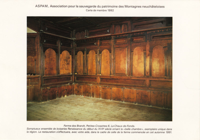 FERME DES BRANDT – 1614. PERLE DE NOTRE ARCHITECTURE PAYSANNE, ACQUISE PAR L’ASPAM EN 1987.1987 Année Le Corbusier. Contribution de l'ASPAM: acquisition de la Ferme des Brandt! Lettre de Charles-Edouard Jeanneret à William Ritter sur La Chaux-de-Fonds (6 septembre 1910): «Nous n'avons depuis les vieilles fermes du XVIIe siècle, plus aucune tradition d'art. Mais ces vieilles et splendides maisons nous donnent justement la mesure de ce que nous pouvons faire si nous le voulons.» Le Corbusier précurseur de l'architecture moderne... et de l'ASPAM! |