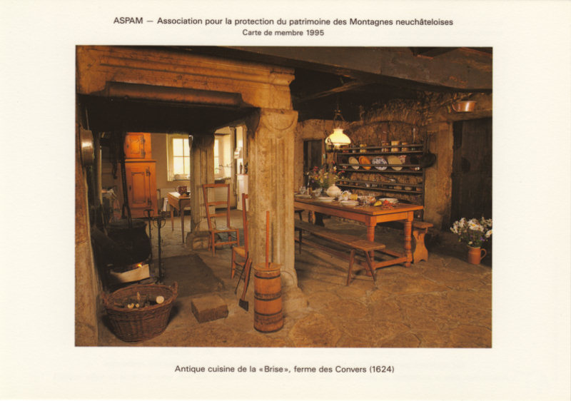ANTIQUE CUISINE DE LA « BRISE », FERME DES CONVERS (1624)Remarquablement restaurée par Edmond Wyser, l'un des pionniers de l'ASPAM. |