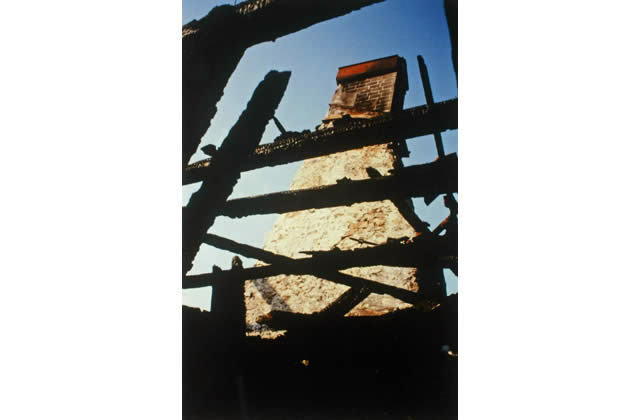 C’est alors qu’un gigantesque incendie survient dans la nuit glaciale du 11 mars 1988, mettant un terme aux efforts de sauvegarde entrepris. Heureusement que la cuisine et la chambre n’ont pas trop souffert du sinistre,Dias ce qui permet à l’ASPAM, avec la collaboration de la Commune, de les récupérer avec l’intention de les remonter dans la ferme toute proche située en ouest, boulevard des Eplatures 58  - ferme Droz-dit-BussetDias-  également propriété de la Commune. Le démontage est effectué avec soin et les éléments récupérés entreposés en lieux sûrs.