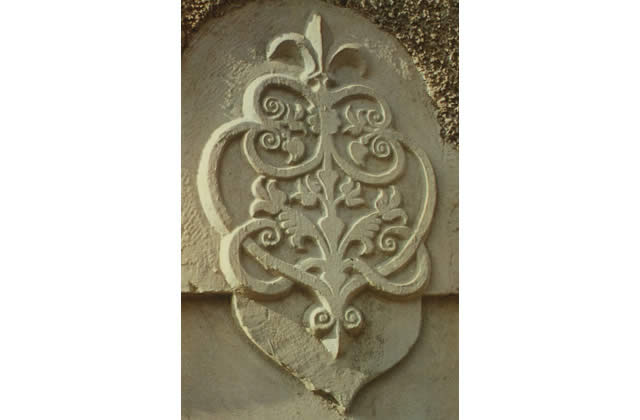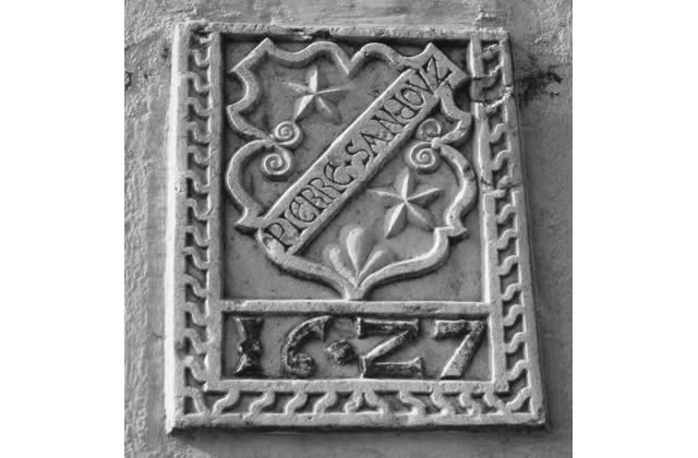 finement sculptée et, au-dessus de la porte des personnes, le cartouche daté 1627